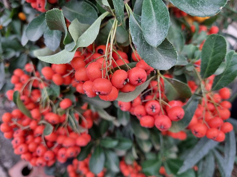 Pyracantha 'Orange Glow' - vuurdoorn,klimplant oranje - rode bes in de