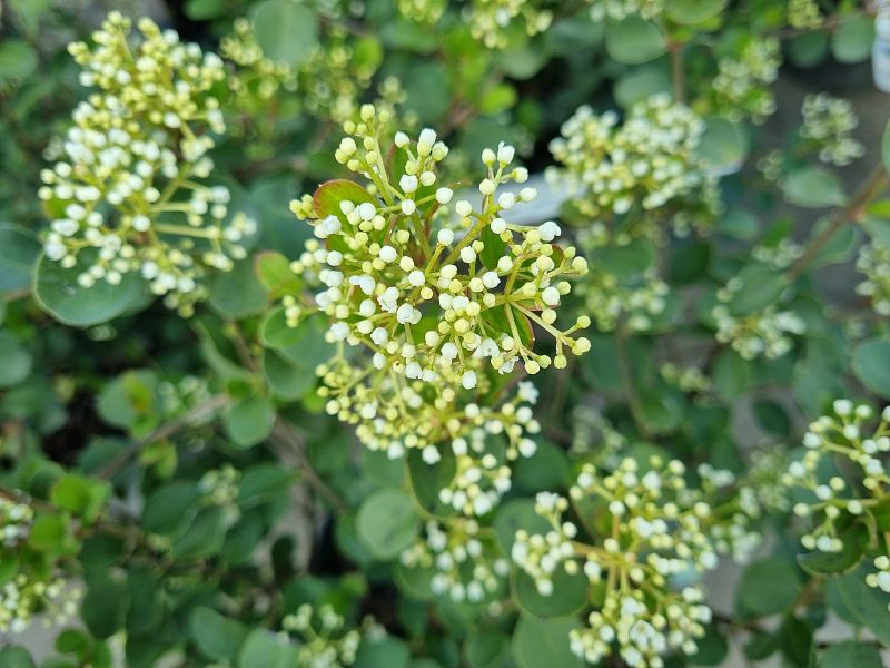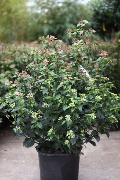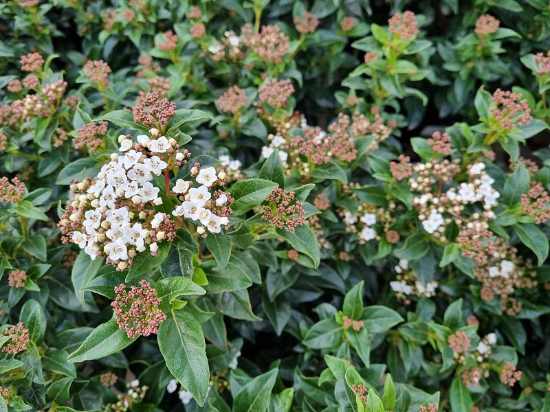 Viburnum tinus 'Gwenlian' - winterbloeier,rotstuin |