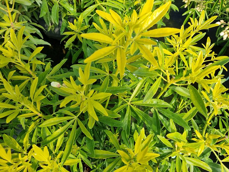 Choisya tern. 'Goldfinger' - fijn geel loof Heeft een 2 de bloei in