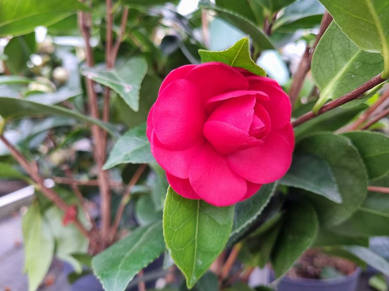 Camellia sasanque 'Yuletide' - zeer mooie bloemen Zuurminnende plant.